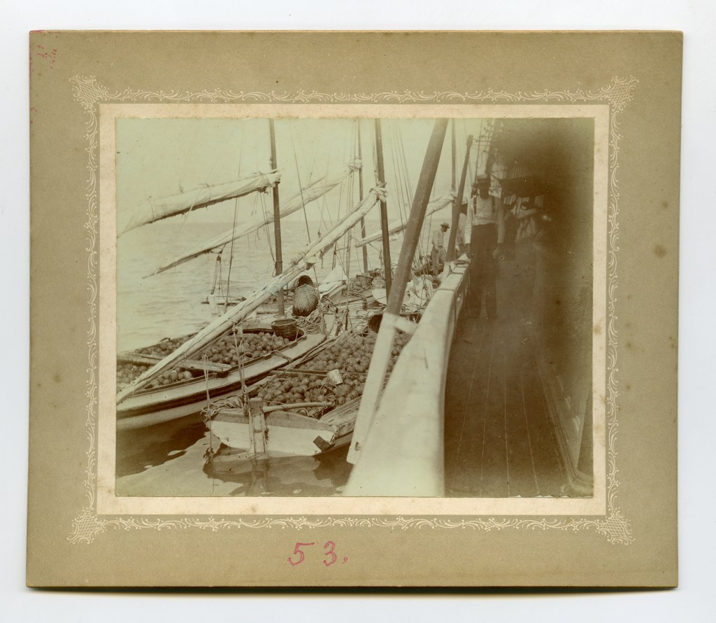 An American sloop picking up coconuts at San Andrés, 1903 (Courtesy of Banco de la República)